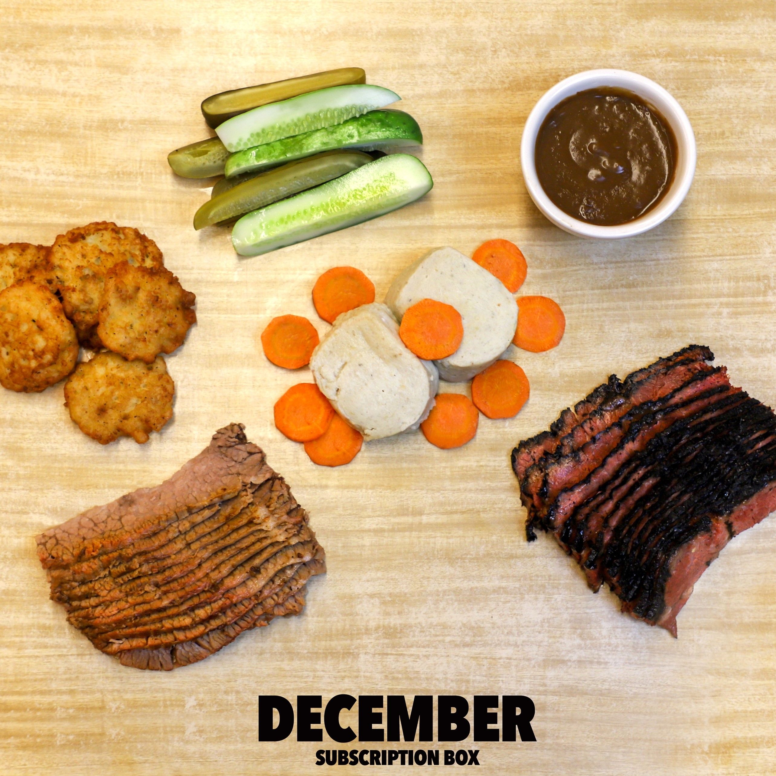 ‘Tis the season for celebration, and our December package is packed with the flavors you love. Enjoy a quart of both our pickles (tangy full sour and crispy new pickles), along with a pound each of our legendary pastrami and brisket. Plus, our gefilte fish can only be enjoyed as part of these seasonal packages! This package includes: