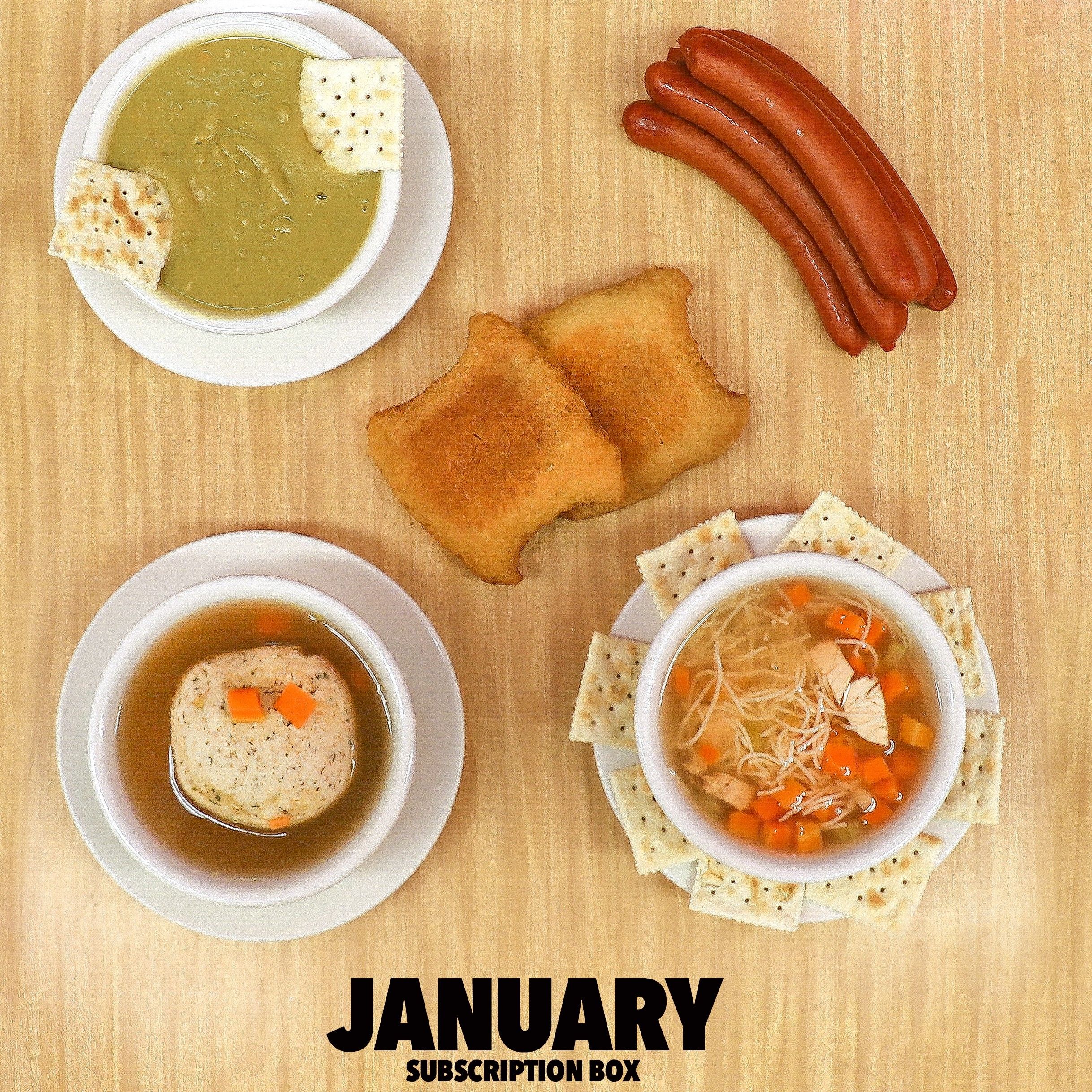 It may be bone-chillingly cold outside, but our January package is guaranteed to keep you warm & comfy during the dead of winter! We’ve packed in 2 quarts of each of our soups – matzoh ball, chicken noodle, and split pea – to enjoy on all those cold winter nights. Our storefront sweatshirt is also a great look out on the slopes, or just in front of the fireplace with a good book. This package includes:
